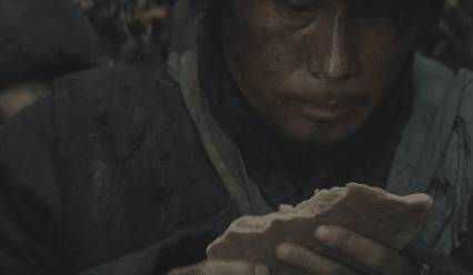 饼分到老山东这里时,他只掰下少许点,看起来连塞牙缝都不够,之后立马递给独揽的小士兵。等吃到嘴里时,老山东也不舍得立时咽下去,而是先在嘴里含了一会,色彩无比享受,足以看出有多赞理这张谈何容易的小饼。