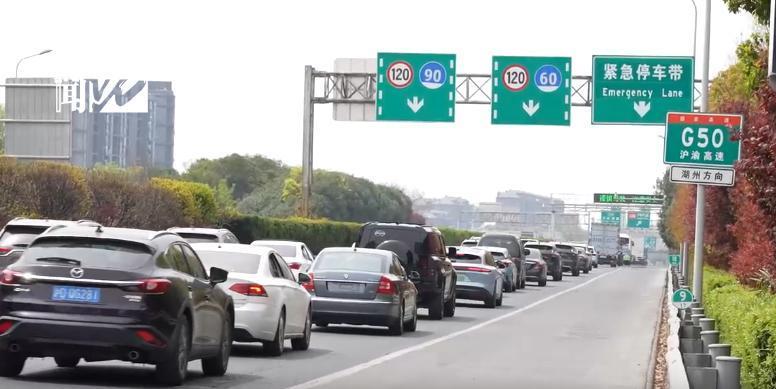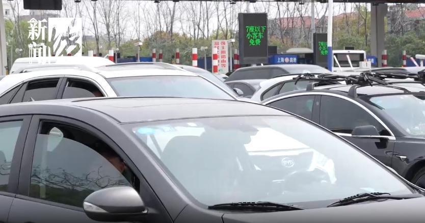 中午11点,记者来到G2京沪高速江桥收费站时,这里的出沪观点依然保持着很高的流量。