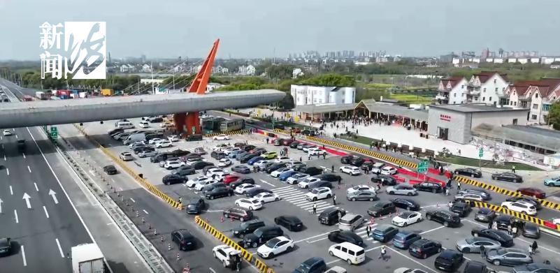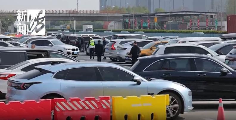 中午时期,G50沪渝高速徐泾收费站出城观点,车辆已排起长龙,通行速率牢固。收费站翻开悉数通说念,现场民警束缚开拓车辆分流。
